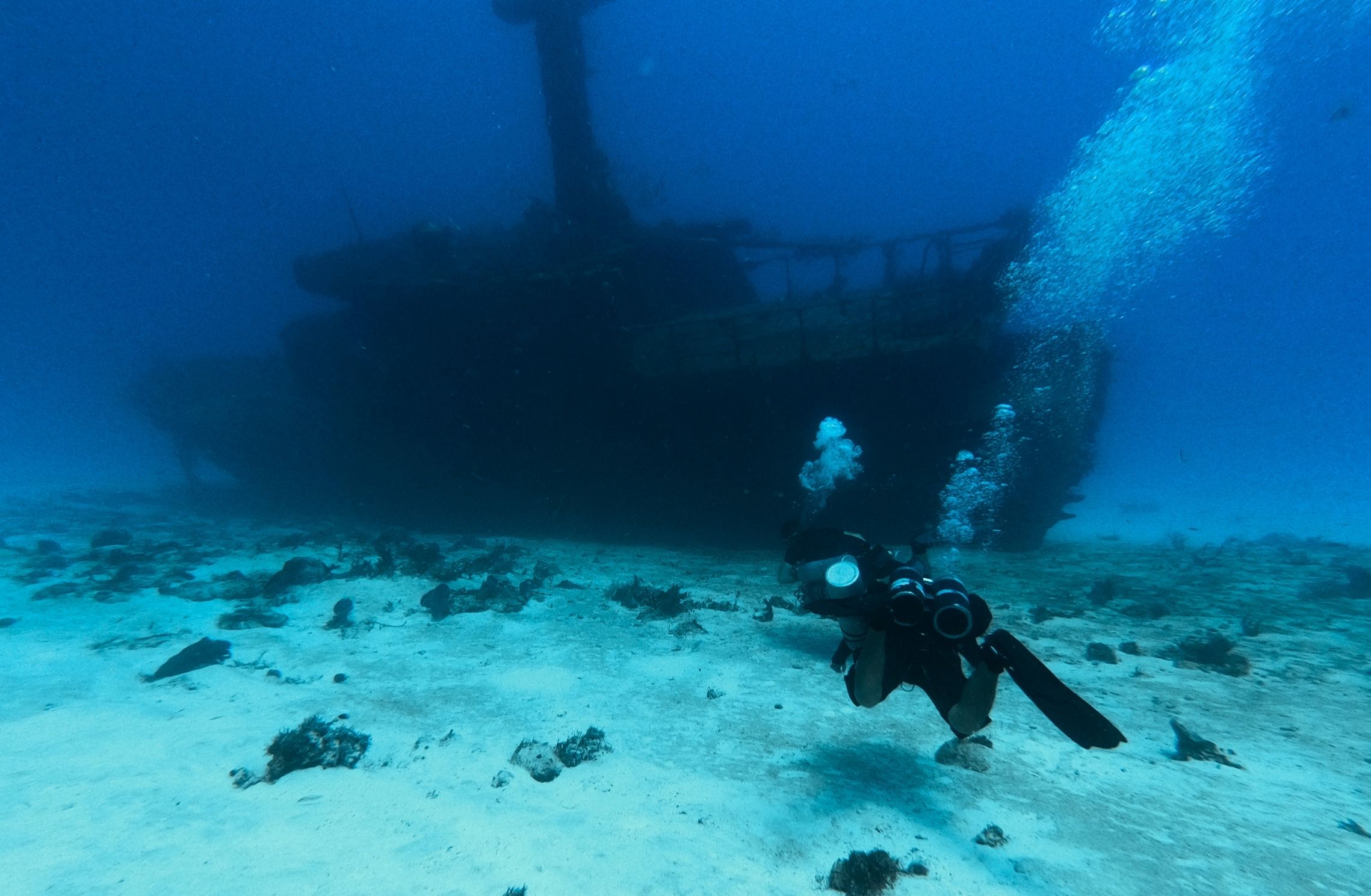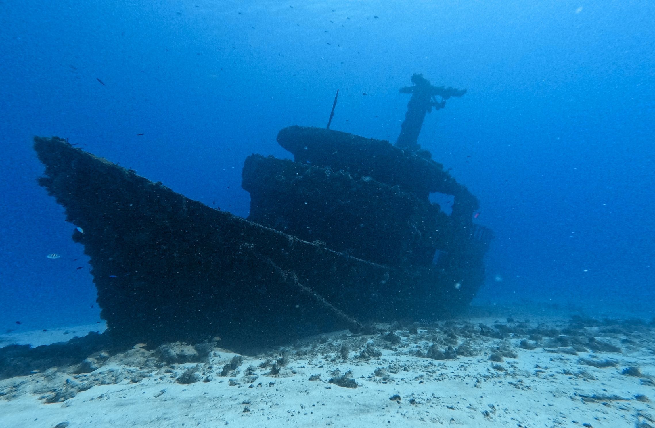 L’épave repose entre 25 et 28m de profondeur, presque intacte. En près de 30 ans sous l’eau, elle s’est couverte de coraux et d’éponges, et abrite désormais une vie marine dense : bancs de carangues, barracudas, vivaneaux, murènes et parfois des tortues marines.