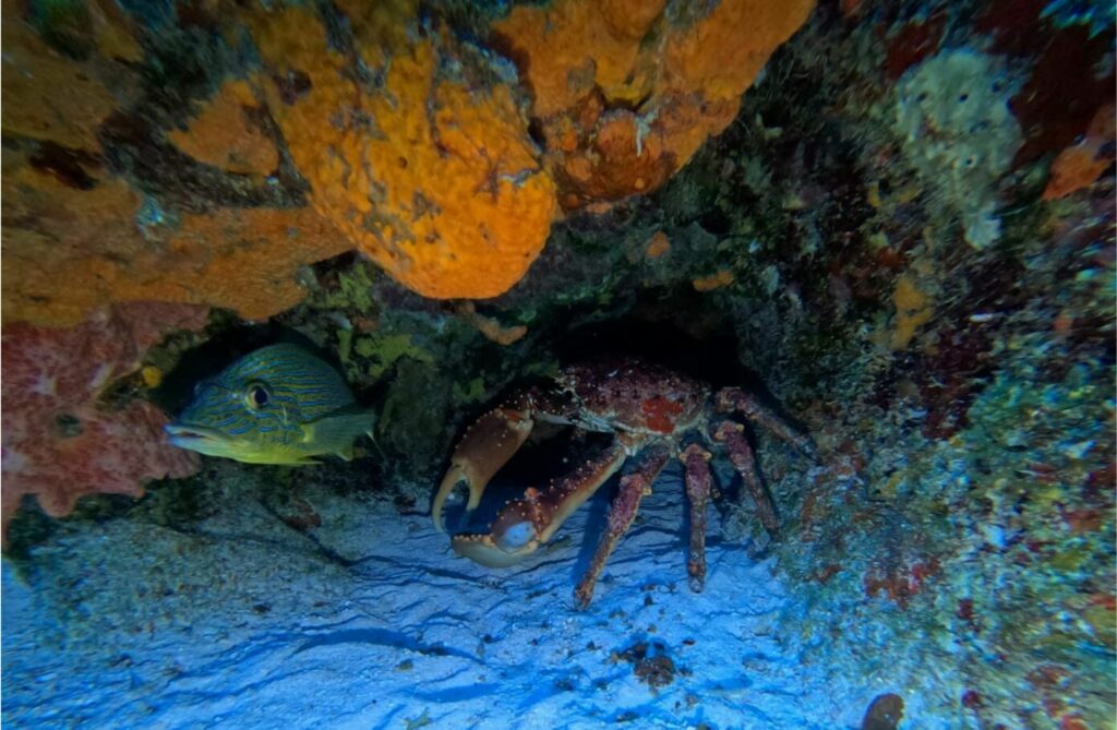 Plus présentes à Cozumel, en raison de la pêche intensive qui a eu lieu à Playa del Carmen, les langoustes se cachent dans des crevasses ou sous les coraux, laissant souvent dépasser leurs longues antennes, faciles à repérer pour les plongeurs attentifs.